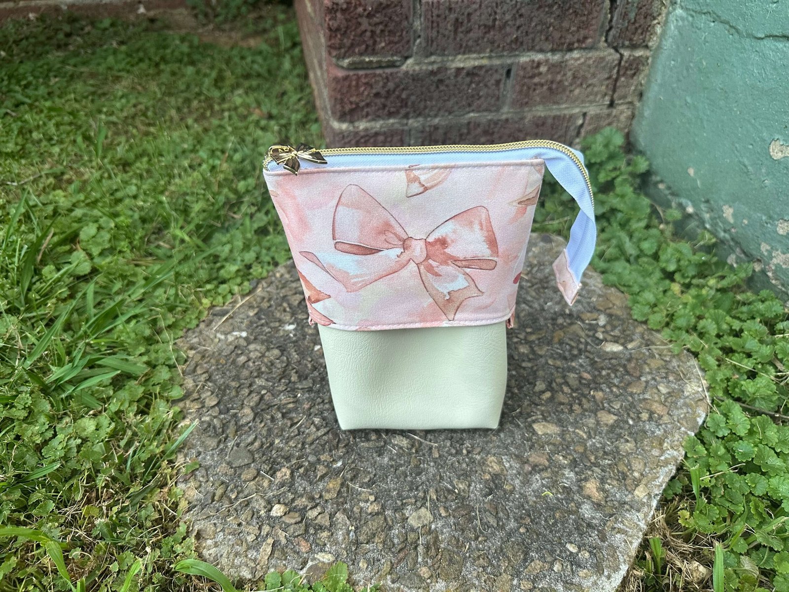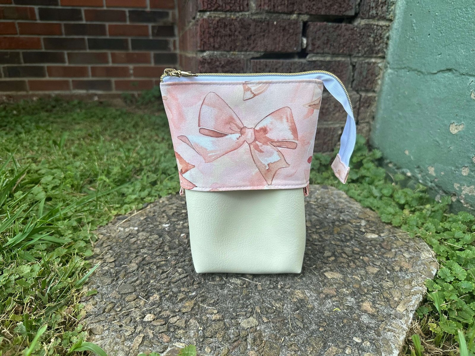 | materials | faux leather, cotton woven fabric, zipper, zipper pull |