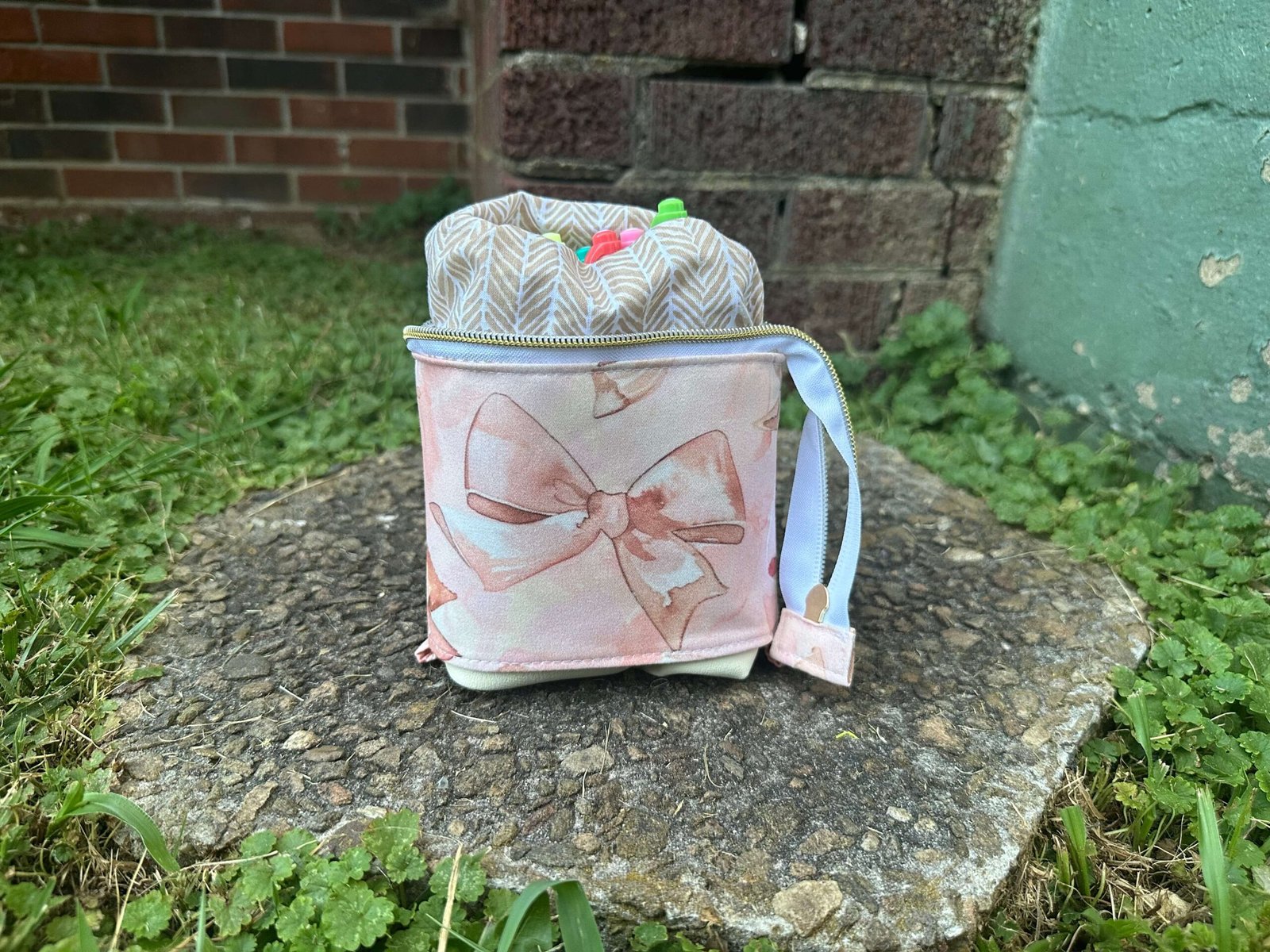 The bottom of the pouch is stiff so it can stand on its own and allow the top sleeve to slide up and down with ease! The long zipper tail also works as a grab and go handle.