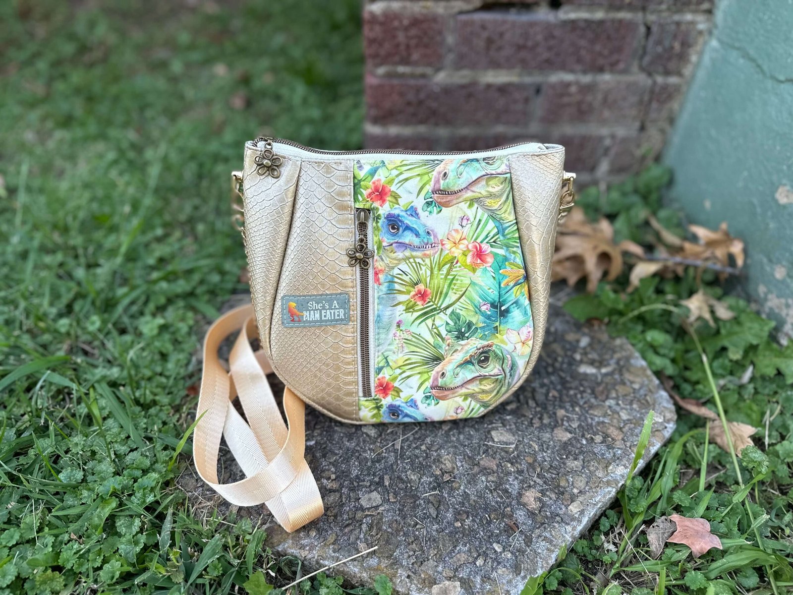 | Materials | reptile faux leather, cotton woven, zippers, custom zipper pulls, custom tag, waterproof canvas for the interior, sturdy |