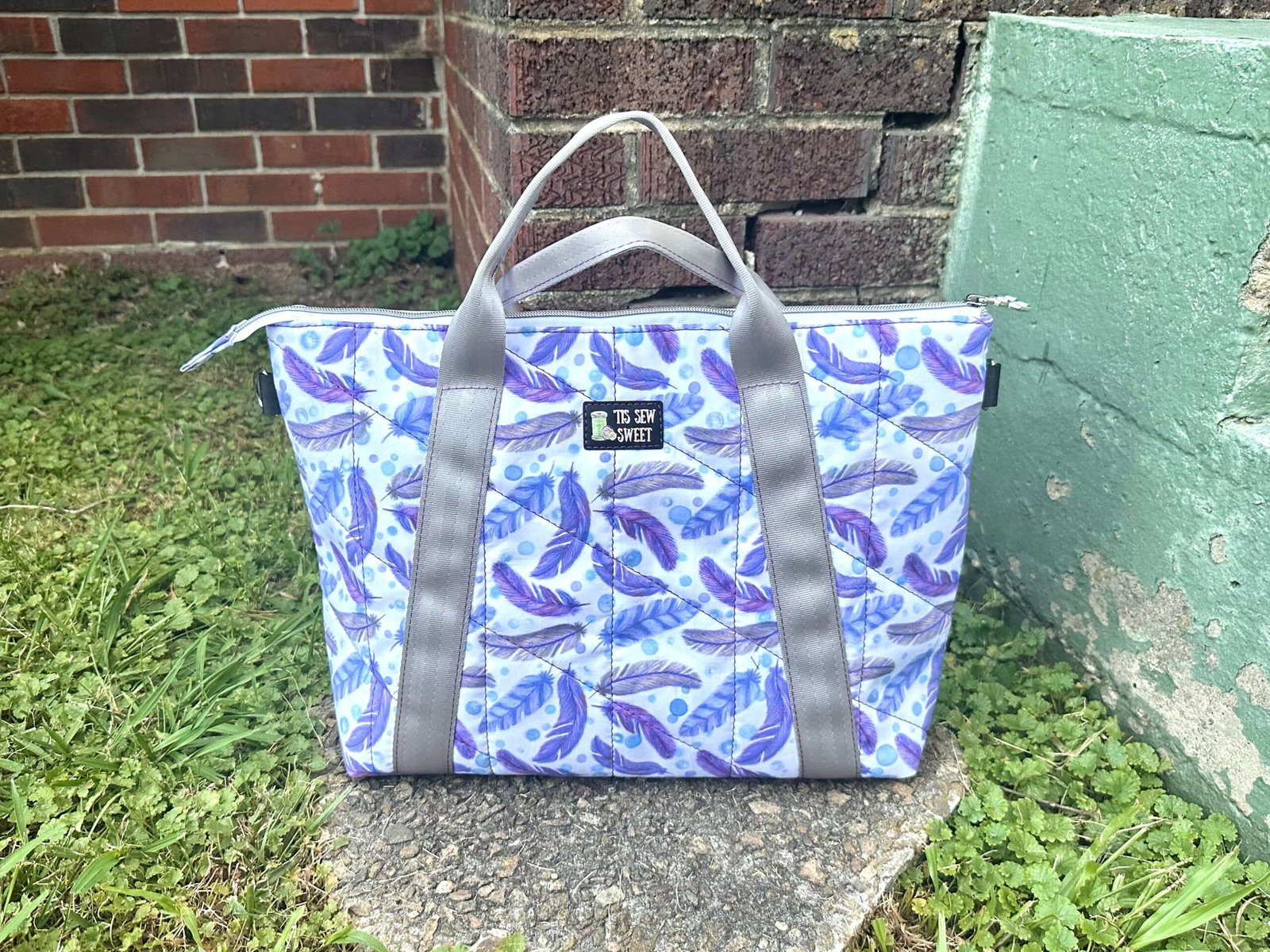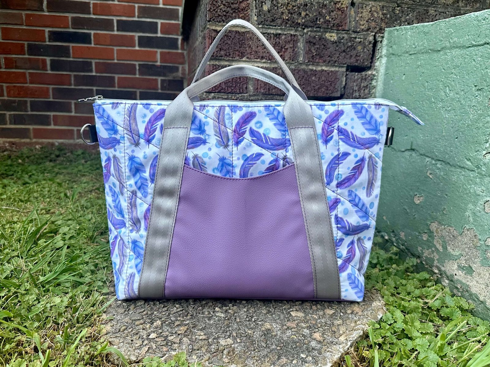 Quilted Purple Feathers Oxbow Tote