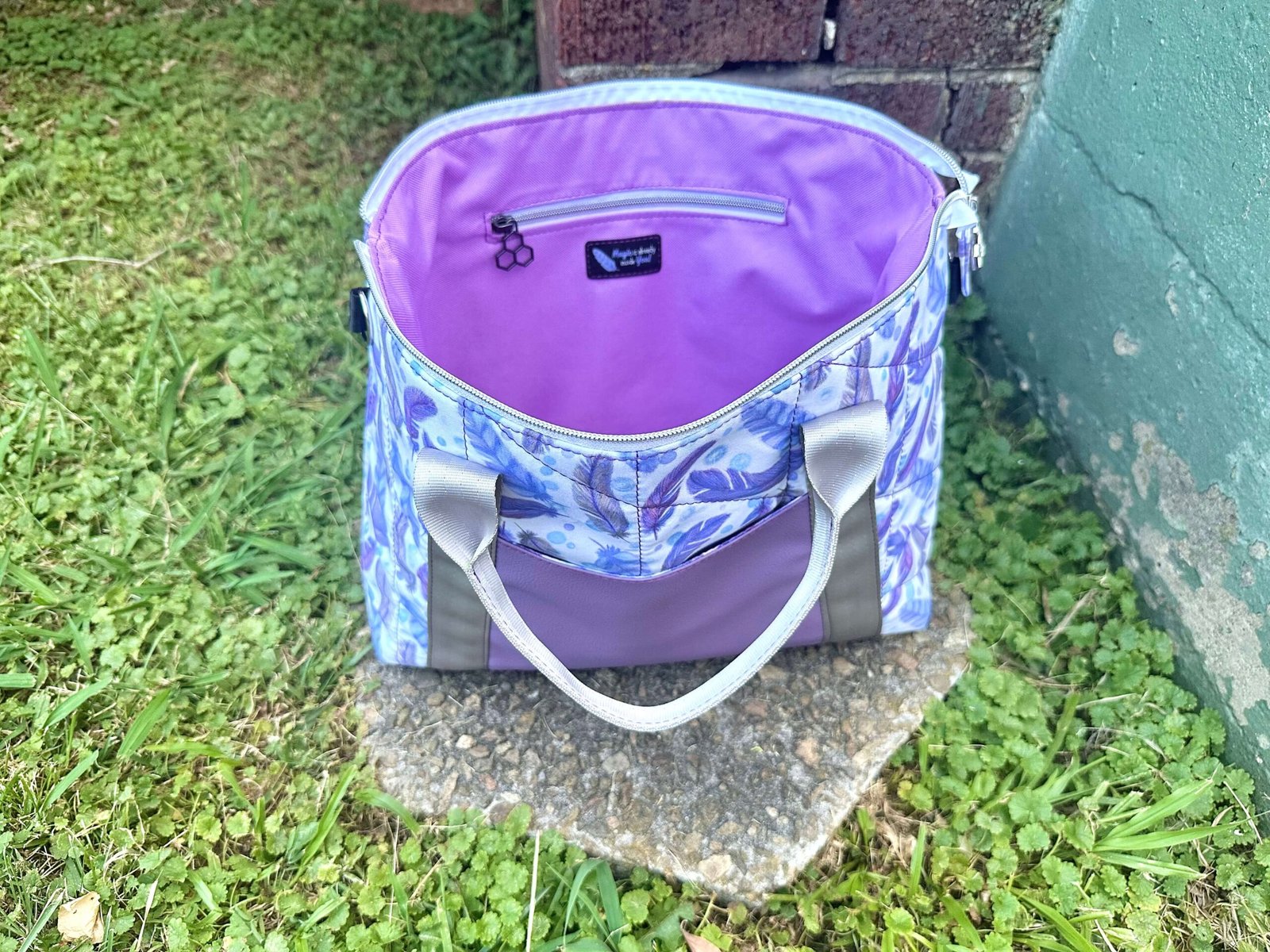 Be the first to review “Quilted Purple Feathers Oxbow Tote”
