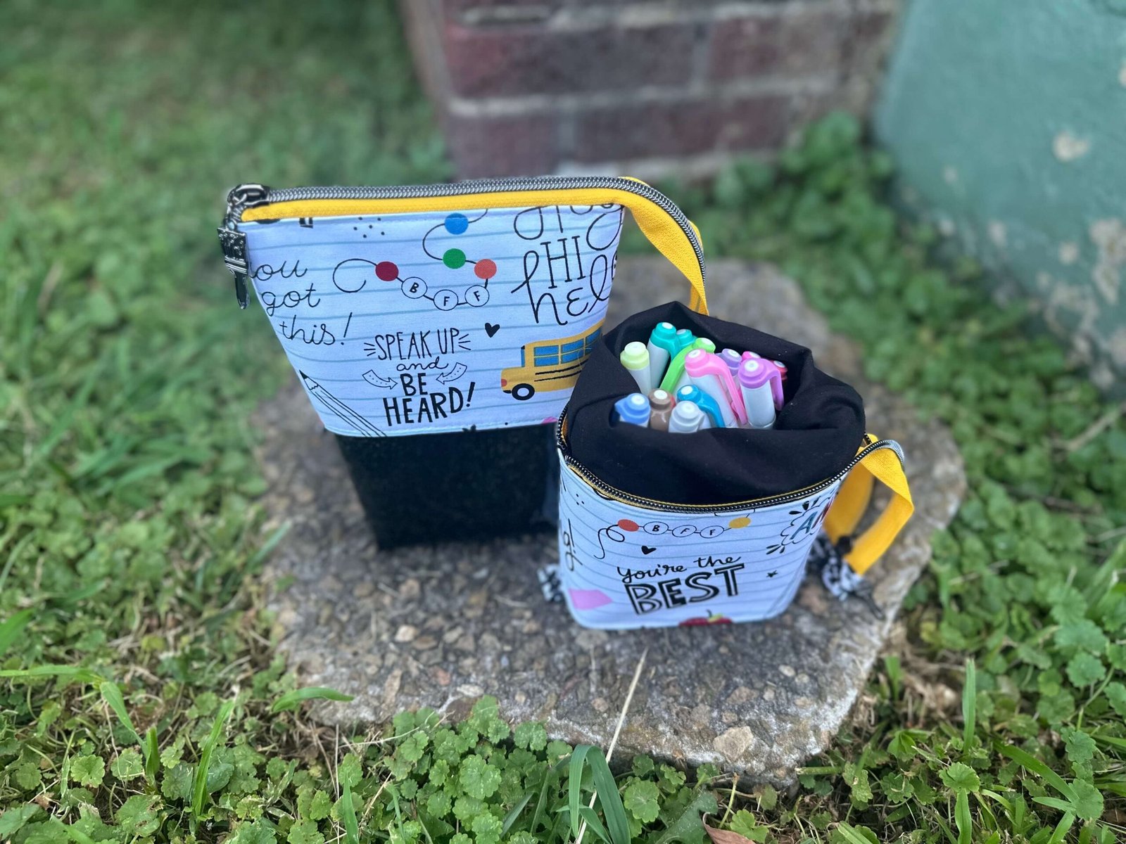 This sliding pencil zipper pouch is great for teachers, students, journaling, a crafty person or just anyone who loves to keep pens, markers and pencils close by them!!